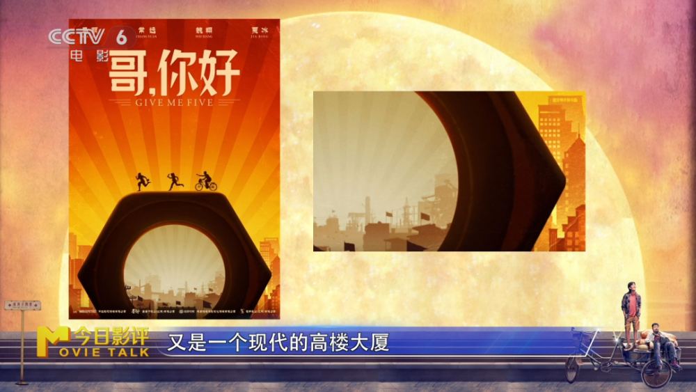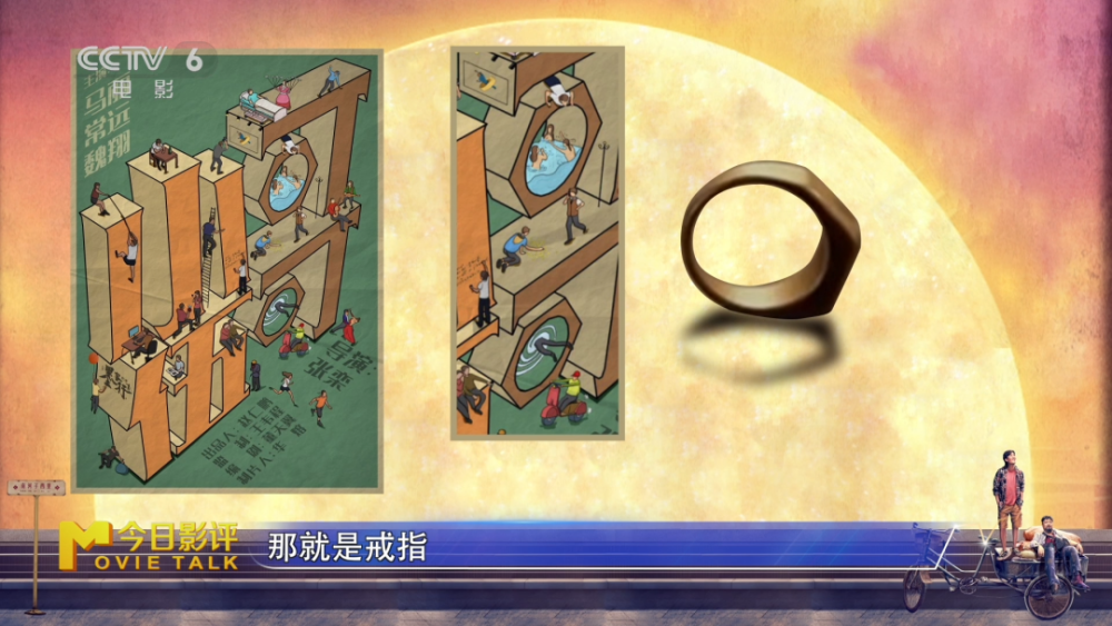第二幅海报是大的螺丝帽,上面有人骑着车,前面两人在跑,这是否在暗示他们的婚姻有一个追逐过程,不是那么轻易能得到?在螺丝帽中是一个复古的80年代房子,但在螺丝帽外头又是一栋现代高楼大厦,暗喻着两个时空的交叠,当下跟80年代的一个嫁接。