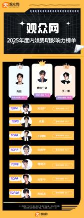 观众网2025年度内娱男明星影响力榜单重磅发布