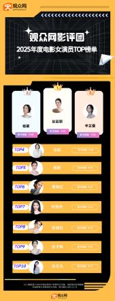 观众网影评团2025年度电影女演员TOP榜揭晓!